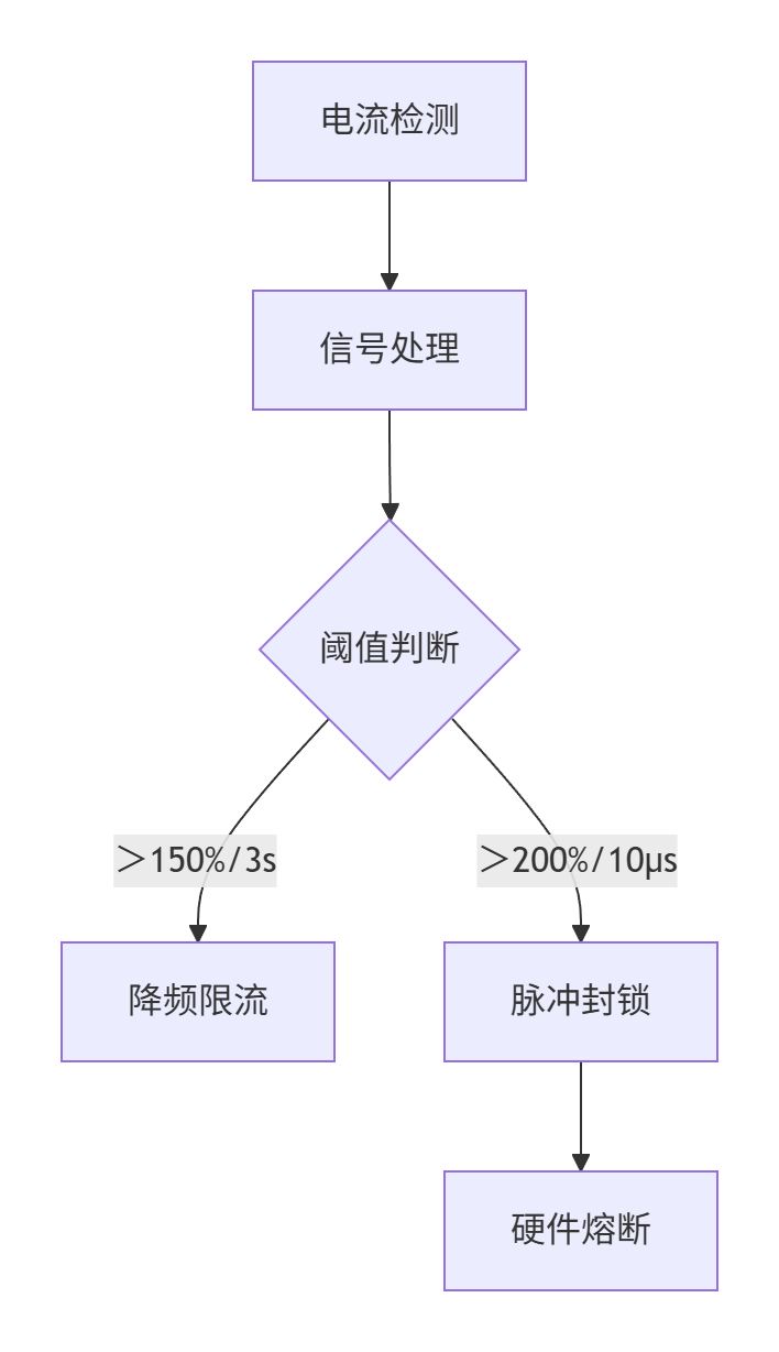 本质差异:过电流是突发性灾难(如短路、硬件击穿),过载是渐进式损耗。前者需“外科手术式”精准截断,后者需“温控管理式”渐进调节!