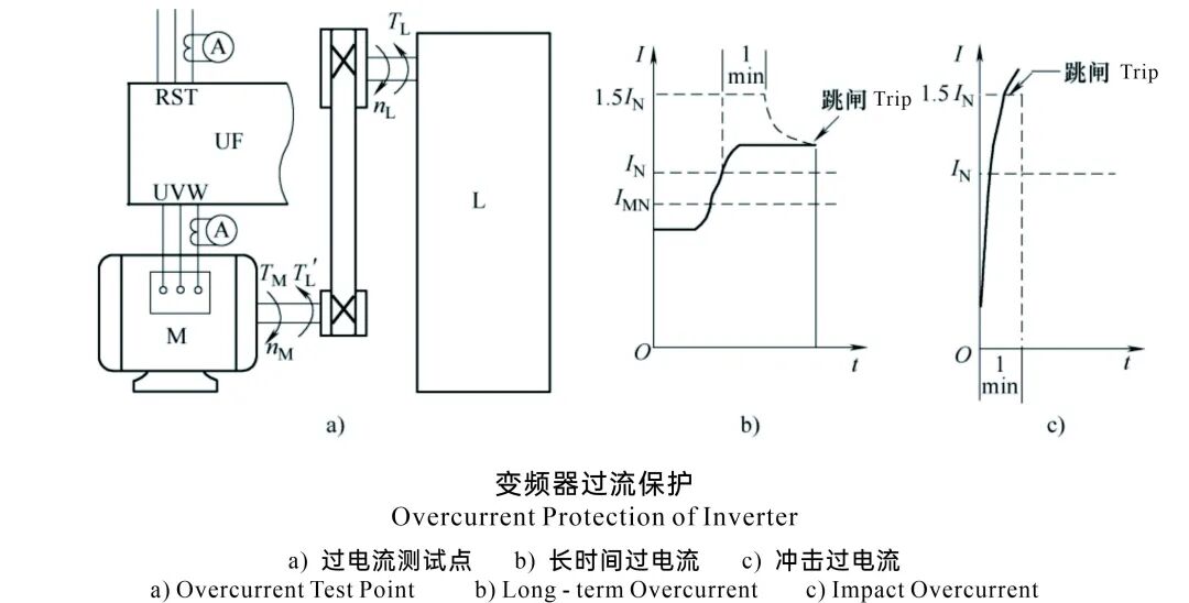 在实际运行中,如果负载的折算转矩远大于电动机可输出的电磁转矩,特别是在启动阶段或遇到突发重载时,变频器输出电流会持续超标,从而触发跳闸保护。