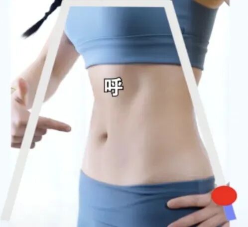 然后慢慢地、用力地呼气 6 秒,最大限度地把肚子向里收缩,感受腹部的发力感。