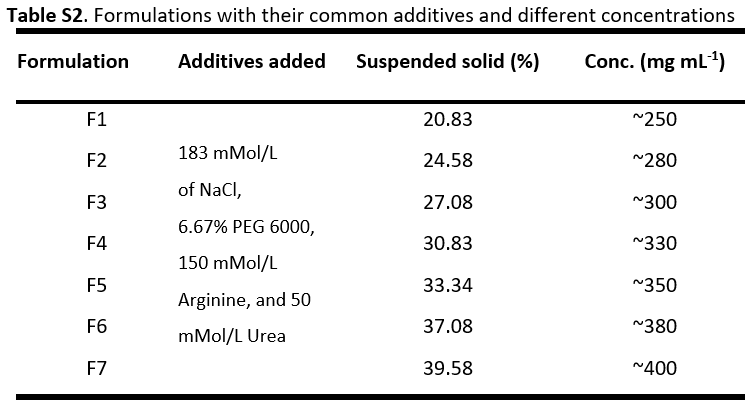 • 配方浓度:从250 mg/mL至400 mg/mL,逐步优化组分比例(详见表S2)。