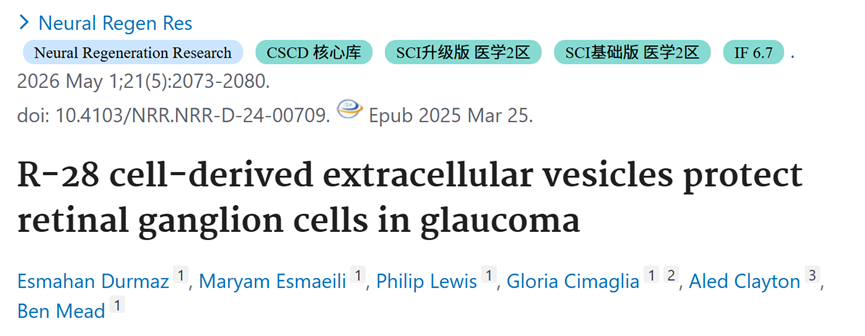 2025年4月发表在《Neural Regeneration Research》上的一项研究探索了源自视网膜祖细胞系R-28的细胞外囊泡对视网膜神经节细胞的保护作用[5]。