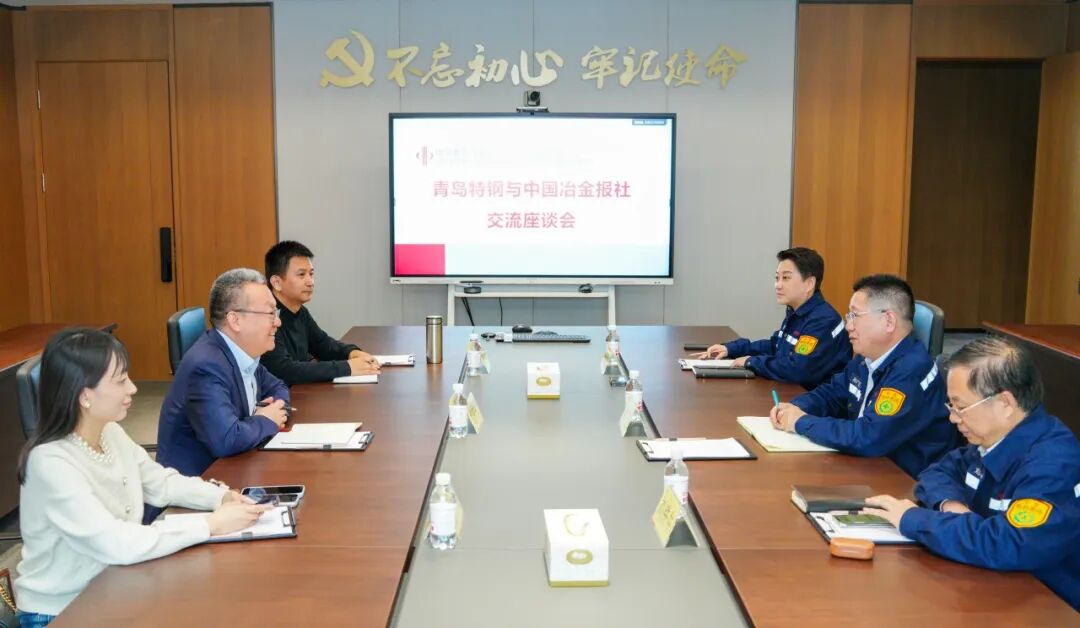 近日,中国冶金报社副社长范铁军一行到访青岛特钢,与青岛特钢党委书记、总经理孙广亿围绕企业管理创新实践、品牌价值提升展开深度座谈交流。青岛特钢党委副书记刘铁牛、党群工作部部长张晓飞,中国冶金报社副总编兼新媒体中心主任吕兵、新媒体中心副主任徐可可共同参与座谈。