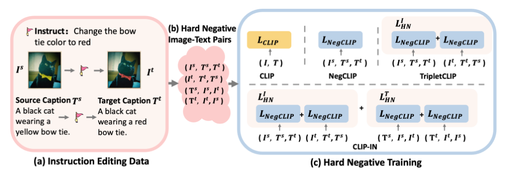 论文简介:视觉语言模型在零样本图文分类,检索任务中取得了显著进展。然而,现有方法主要聚焦于通用任务,难以提取图片细粒度特征,在面对相似度极高的图片对时会面临幻觉问题。此外,这些方法在长文本图文检索方面的能力受到了限制。为此,本文推出创新视觉语言训练框架CLIP-IN以应对图片细粒度提取和长文本图文检索方面的挑战。具体而言,在训练方面,我们使用了“指令跟随的图像编辑数据集”作为现成的“困难图文样本”并提出了“对称困难负样本损失”。同时,我们在两阶段训练框架中对带旋转位置编码(RoPE)的文本编码器进行蒸馏,使模型具有处理长文本的能力。我们的方法使基线模型在通用,细粒度和长文本图文分类与检索中都有显著提升。