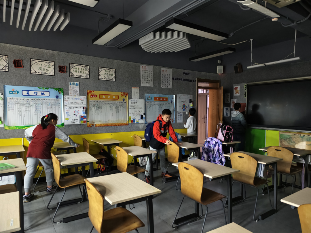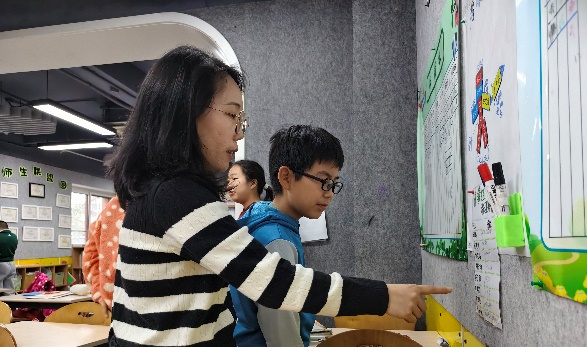 在刘子为四年级的时候,腼腆内向。班主任李文婷在班级推行“三国治理”体系,让他担任“空间运营师”,负责关灯、关门等小事。她不做“指挥者”,而是“退后”观察。
