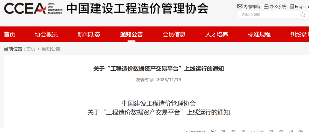 中国建设工程造价管理协会 《关于“工程造价数据资产交易平台”上线运行的通知》