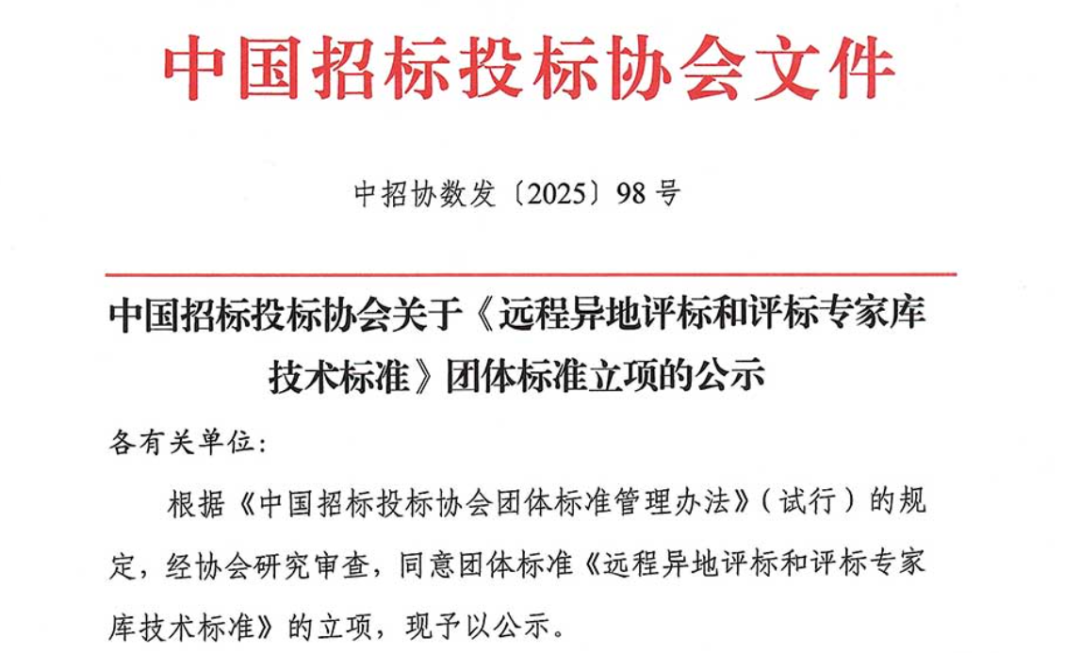 中国招标投标协会关于《远程异地评标和评标专家库技术标准》团体标准立项的公示