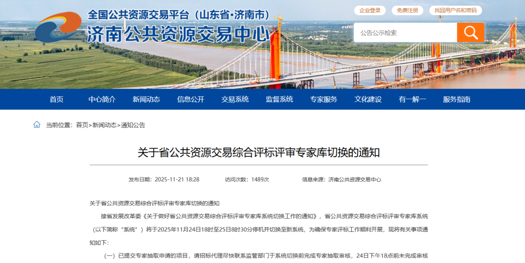 济南公共资源交易中心《关于省公共资源交易综合评标评审专家库切换的通知》
