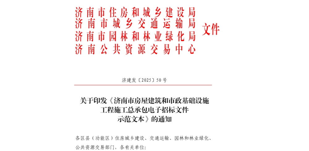 关于印发《济南市房屋建筑和市政基础设施工程施工总承包电子招标文件示范文本》的通知