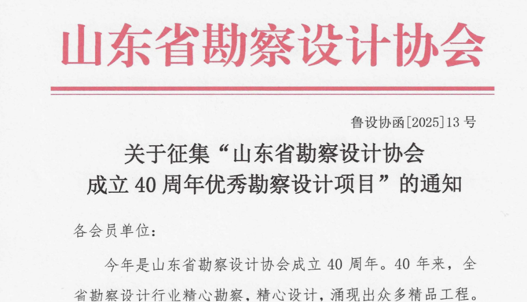 山东省勘察设计协会《关于征集“山东省勘察设计协会成立40周年优秀勘察设计项目”的通知》