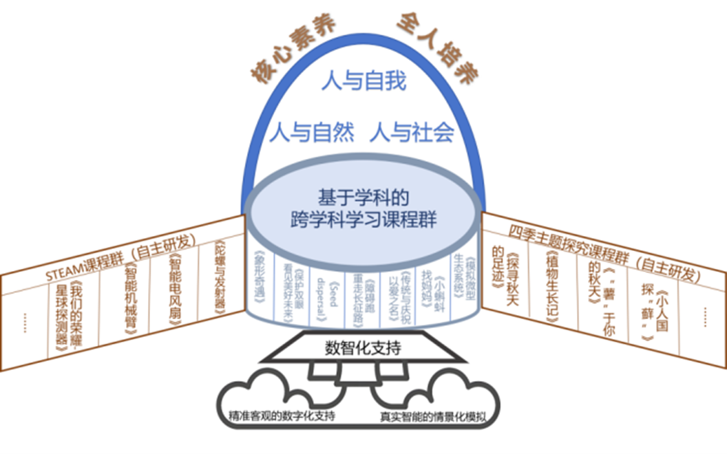 英华小学部数智化支持下跨学科课程“一体两翼三维”结构图