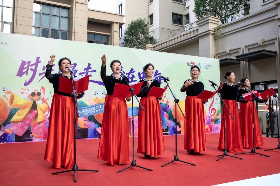 社区舞台,绽放银发青春。在上海,业主们沉浸式演绎弦乐三重奏,赢得阵阵掌声;在银川,长者们以喜庆的集体扇舞,舞出欢腾的气氛;在汕头,业主们跳起了民族舞,定格诗画般的韵致;在西安,业主们以深情饱满的合唱,唱出对生活的热爱与期盼。