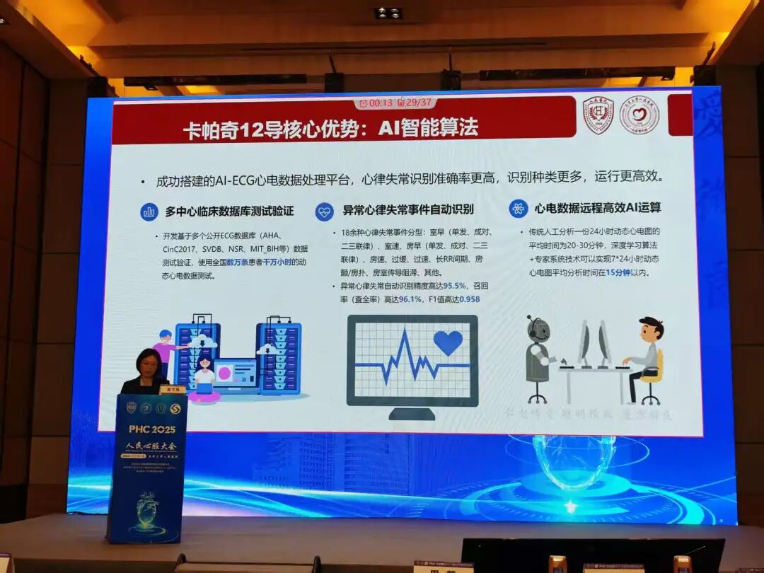 卢喜烈教授在《人工智能动态心电新技术》专题分享中,重点介绍了人工智能算法在十二导贴中的核心应用:其能够实现对海量心电数据的高效分析,自动识别和分类复杂心律失常及心肌缺血,大幅提升了诊断的准确性与效率。