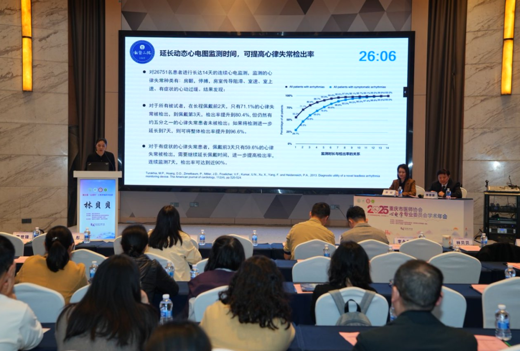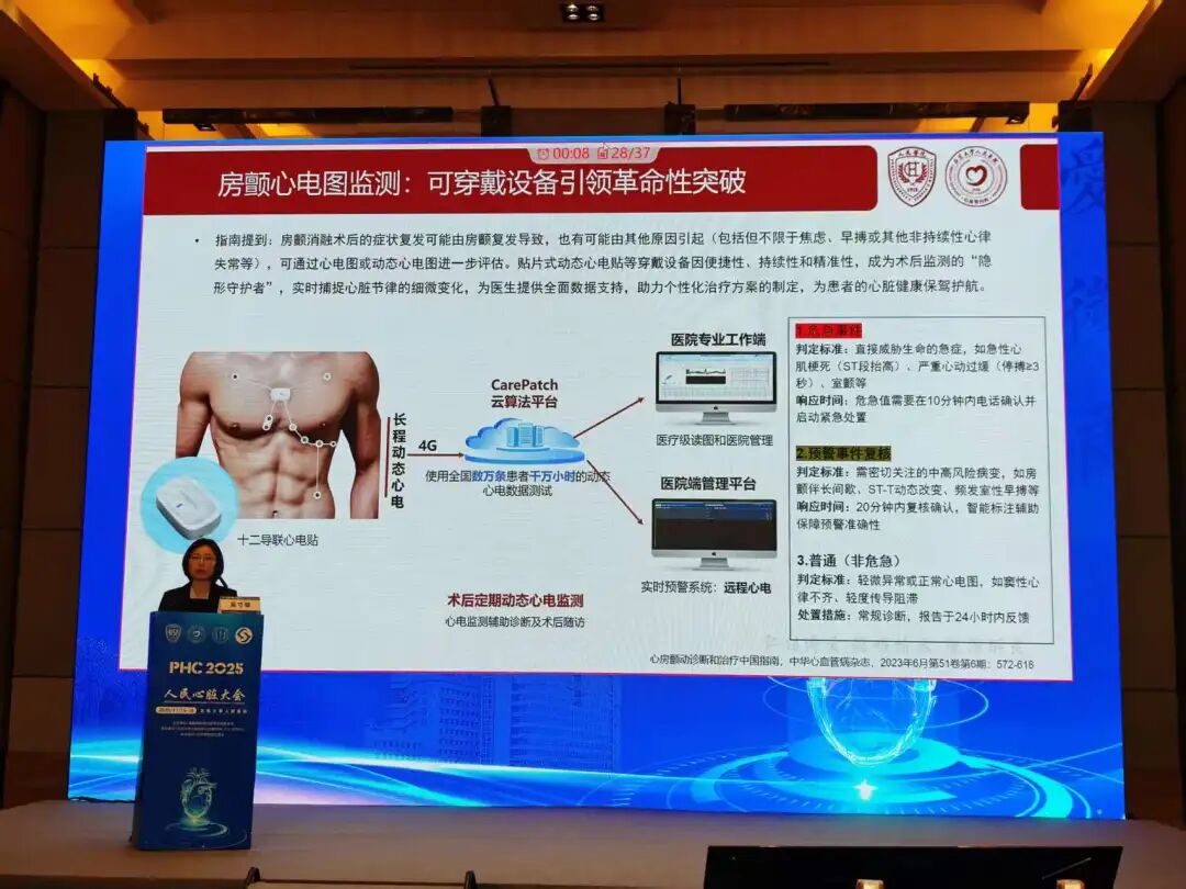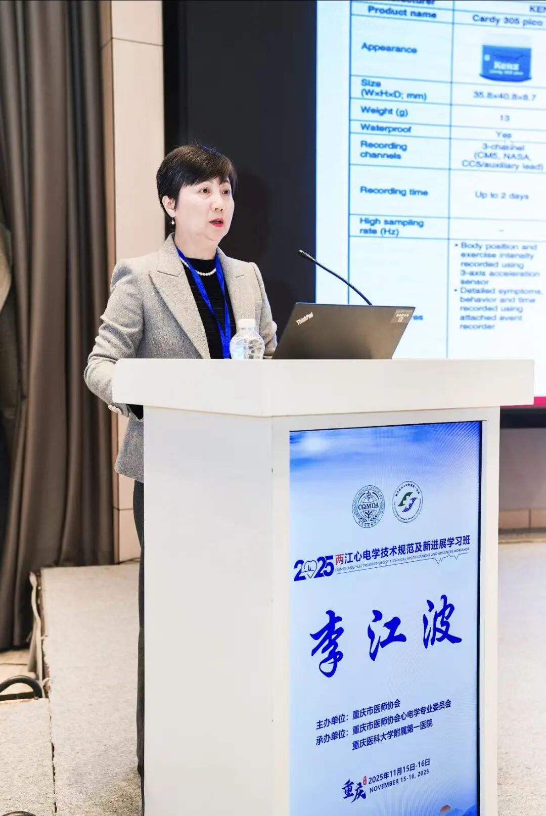 李江波教授在报告中,深入比较了穿戴式动态心电相较传统设备的显著优越性。她强调,新型的贴片式设计能够在确保数据质量的前提下,极大地提升了患者的佩戴舒适度和生活便利性,为长期监测提供了可靠保障。