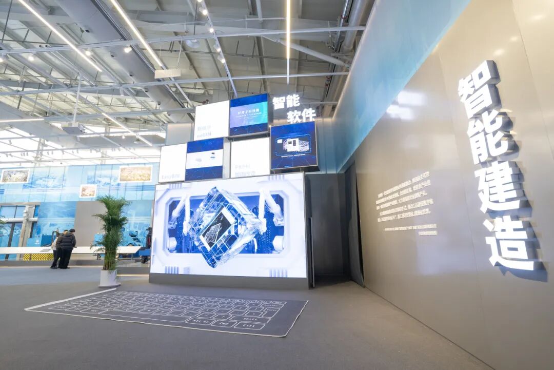 智能建造展区通过智能软件、智能装备、智能管理以及集成式智能作业场景四大板块,重点展示“天蝉”施工机器人系统、塔机远程驾驶智能集控系统、无人塔吊、中优云视云骥无人机、斯维尔系列国产软件、SECM竖井掘进机等35项展品,系统化体现新一代信息技术与工业化建造技术深度融合形成的人机协同建造方式,展现从“建造”到“智造”的跨越。