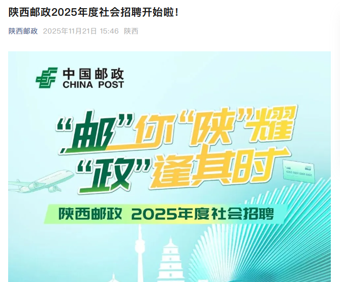 陕西邮政2025年度社会招聘公告