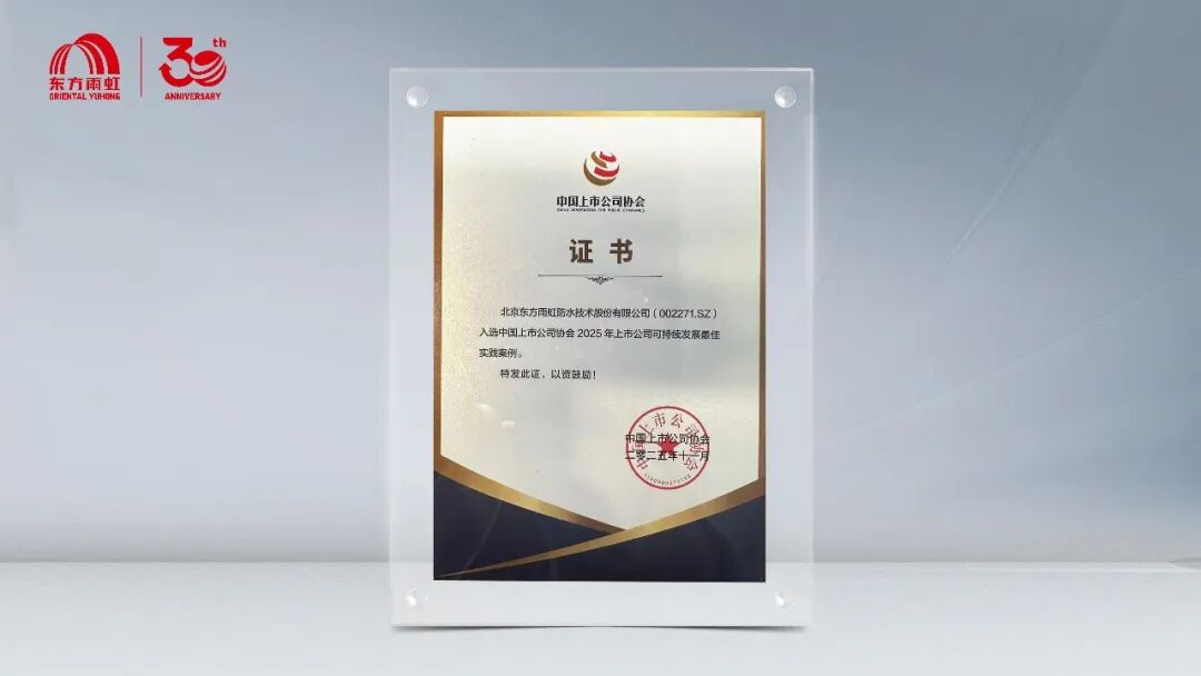 东方雨虹入选2025上市公司可持续发展最佳实践案例