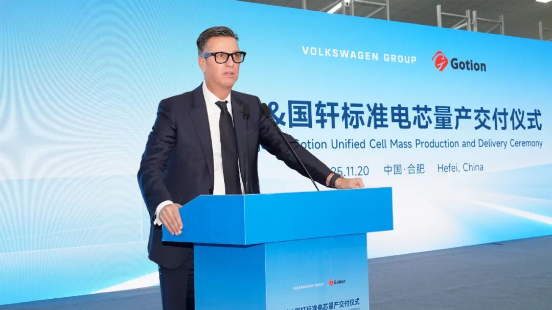 大众汽车集团首席技术官Thomas Schmall表示:“如今,大众汽车集团、国轩高科与 PowerCo 三方的紧密合作已迈入新阶段。标准电芯是大众汽车集团的全球技术平台,能为集团几乎所有品牌和区域市场带来创新赋能,并实现规模效应。伴随国轩高科在合肥基地生产的磷酸铁锂标准电芯、以及PowerCo德国萨尔茨吉特工厂自今年12月起启动三元标准电芯的生产,我们已做好准备,为大众汽车集团旗下品牌提供极具竞争力的新一代电池技术,共同塑造电动出行未来。这也使国轩高科成为我们全球‘自主生产 + 外部采购’(Make-and-Buy)电池战略的一大关键支柱。”