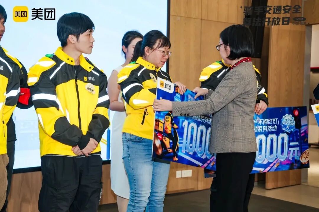 安全激励天天有奖,骑手送单只要不闯红灯,美团每日发放对应现金奖励,累计获奖人次可过百万。