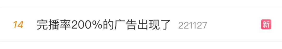 听说,有一支完播率200%的广告上线了,还上了热搜!