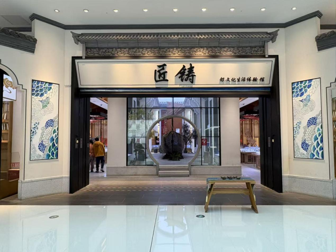 今年国庆期间,成都融创茂钟书阁书店一角的长桌被亲子家庭与游客层层围绕,参与者亲手拓印清代复刻雕版,古雅文字浮现刹那喜悦与惊叹洋溢在每个人脸上。该活动单日吸引超300人沉浸参与,平均体验时长约1.5小时,更带动相关文创销售额提升28%,成为非遗传承与文旅体验深度融合的生动案例。作为2025年唯一上榜“全球十大最美书店”的中国书店,融创茂内的钟书阁(都江堰店)以都江堰水利工程为设计灵感,通过拱形门洞与镜面天花板打造出超现实风格的“魔幻书房”空间。正因这一空间的独特魅力,吸引了融创商业与其联手,近年来共同开展非遗拓印、非遗太极等文化实践,现已发展成为融合阅读、美学与川西非遗的城市文化新地标。踏入匠铸,仿佛走进一座微缩的江南园林与银器工坊。月门之后,映入眼帘的不仅是精美的银器,更是传承千年的匠心。这里的主角,是名为“錾刻”的非遗工艺。每一件银器的诞生,都需历经熔银、锻打、制錾、粗錾、细錾、抛光等38道工序,匠人需娴熟掌握108种不同錾子(一种用于凿刻金属的手工工具)的用法,在一錾一敲间,与银器对话。平均每件作品需亲手敲击近8000次,方能在金属上刻画出深邃立体的纹理。“匠铸”品牌于2011年创立,并于2019年6月入驻无锡融创茂开设首家商场店,融创商业随即主动与其联合开展各类非遗活动。依托融创茂的客流优势,非遗文旅得以触达更广泛人群,持续传递“匠铸”品牌对匠心传承的坚守与热爱。