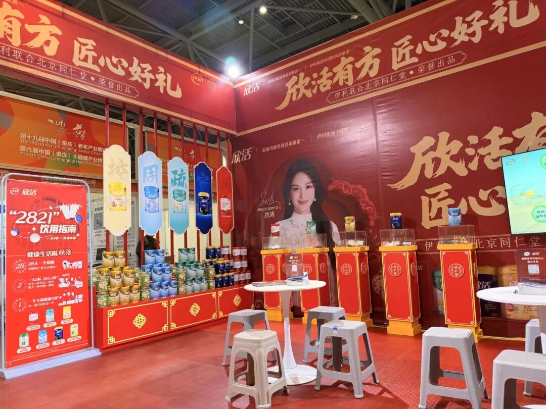 健博会上,伊利精心打造了“伊同滋养 渝见健康”主题展区。展区融合现代设计与传统中医药文化元素,重点展示伊利×同仁堂欣活系列产品,并配合中药材原料(如灵芝、玉竹)的实物展示,直观体现“药食同源”概念。伊利欣活终坚持以消费者需求为核心,融合借助现代乳品科技力量,精准贴合中老年控糖、助眠、健骨、护心脑等健康需求。这些产品既保留了奶粉的营养价值,又融入了传统中医药的养生智慧,实现了“美味与健康兼得”。生动诠释了“银发新浪潮、渝悦创未来”的健博会主题。