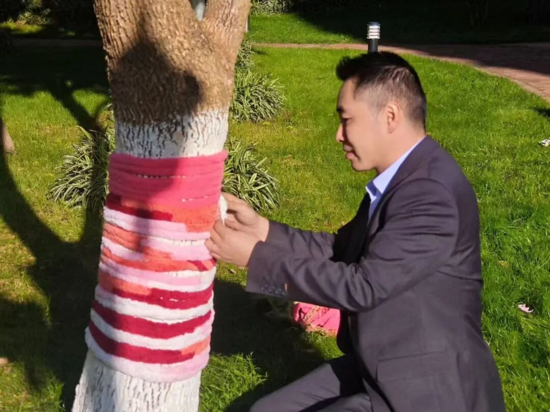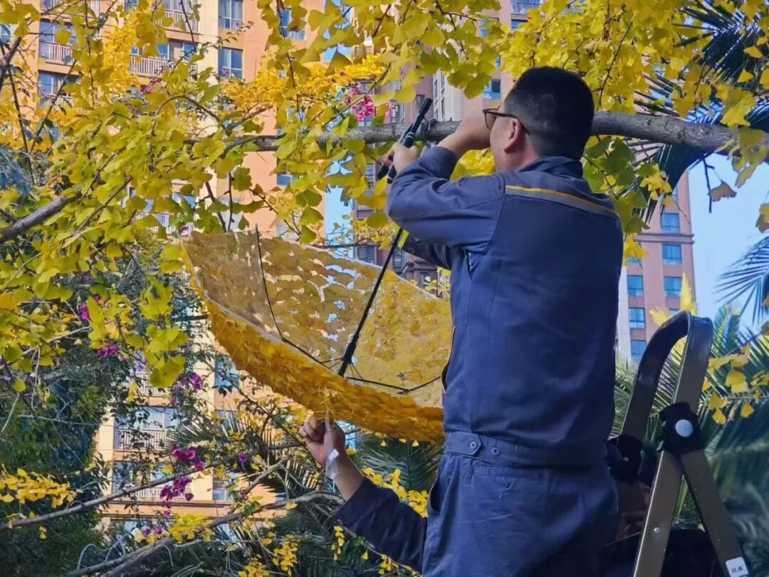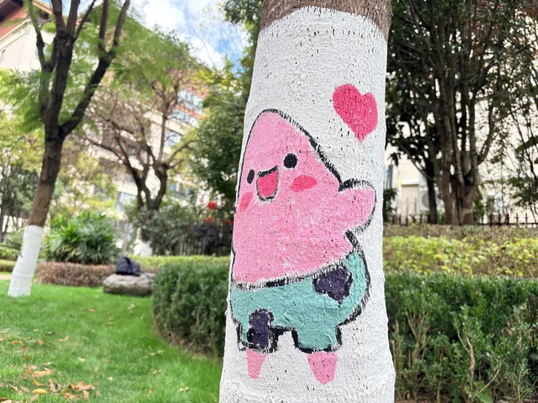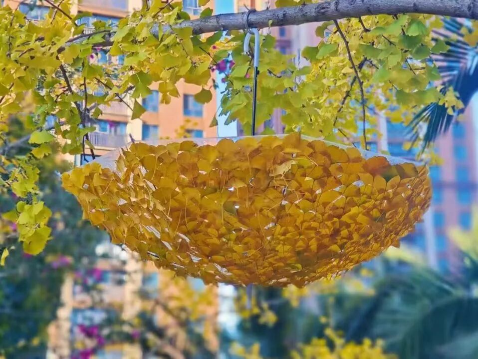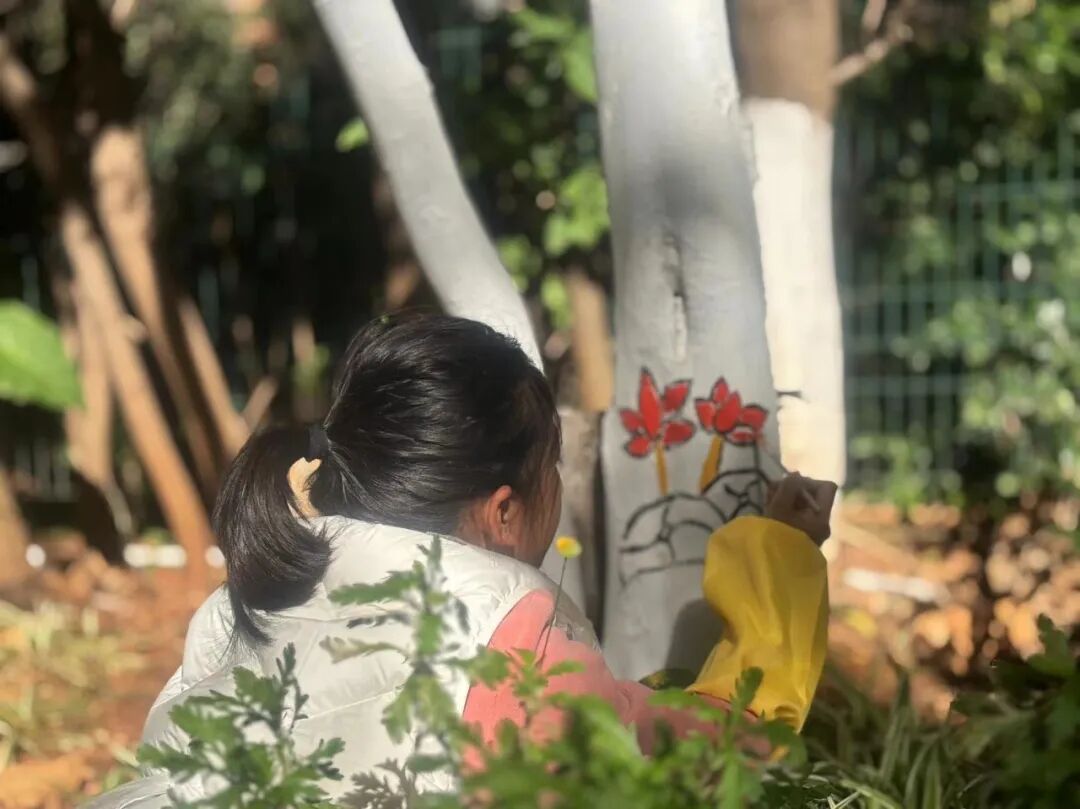 这个秋天,我们和落叶玩了起来。地上拼出图案,树上挂起落叶伞,还邀请小朋友在树干上画画。沉默的树突然讲起了童话,园区好像住进了一个柔软的秋天。