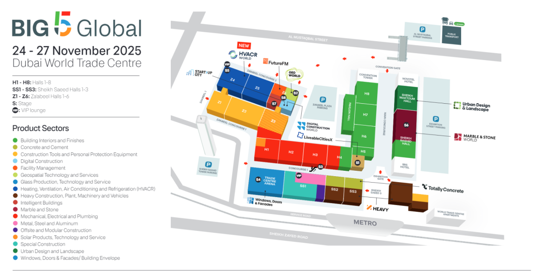 The Big 5 Global 2025 (UAE Dubai International Building Materials Five Major Industries Exhibition) will be grandly held at the Dubai World Trade Centre from November 24 to 27, 2025. Since its first launch in 1980, the exhibition has a 44-year history and has become one of the largest and most influential construction and building materials exhibitions in the Middle East. It covers multiple industries including building materials, hardware tools, ceramic sanitary ware, air conditioning and refrigeration, and construction machinery, serving as a weather vane for construction industry exhibitions in the Middle East.
