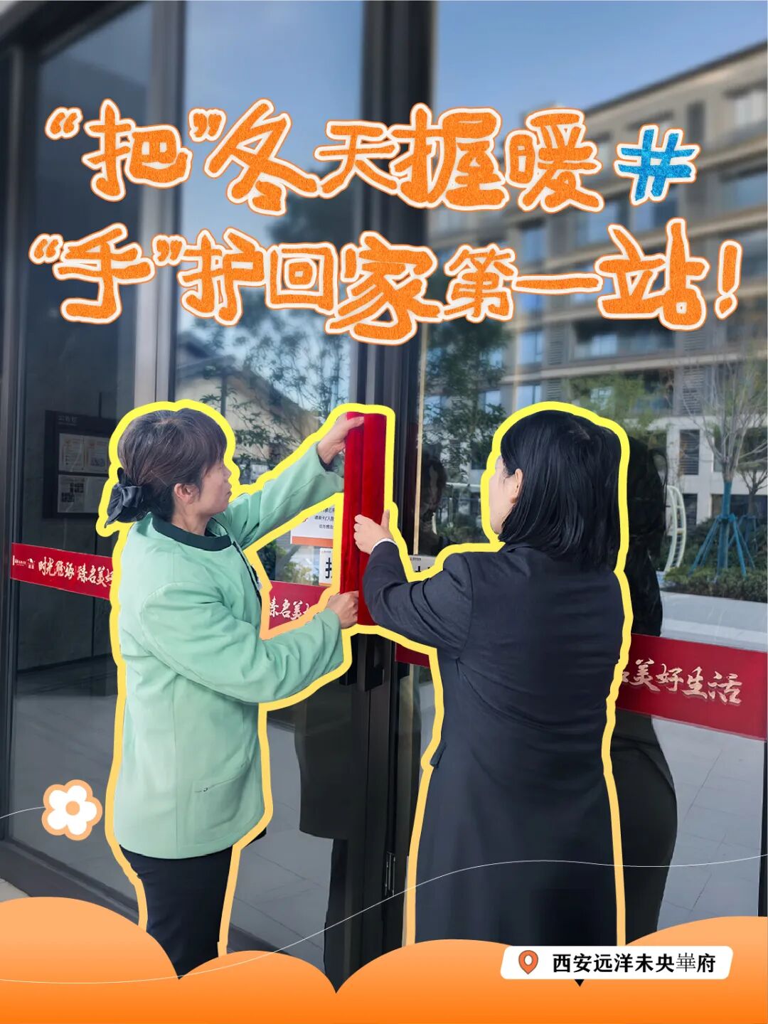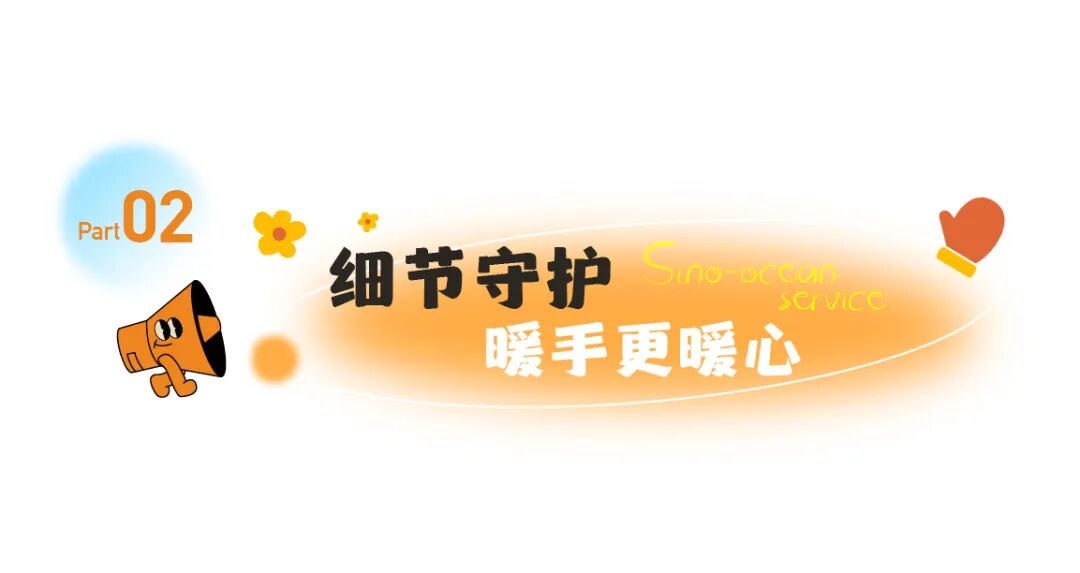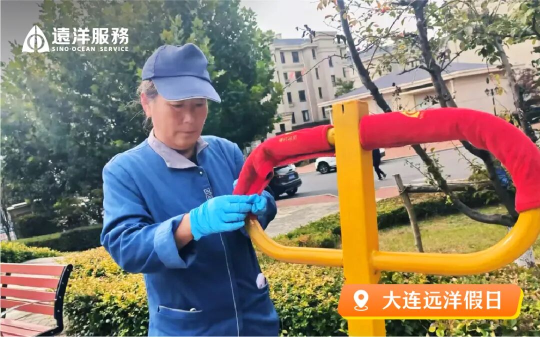冰冷的门把手、凉意的健身器材,我们都悄悄为它们穿上了“毛衣”。一点毛绒的包裹,一份用心的温度,远洋服务希望您每一次触碰,都能感受到“手”护的温暖。