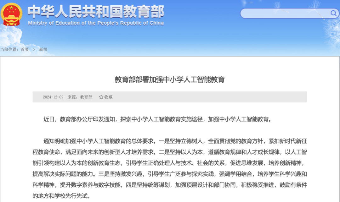 教育部早已明确部署中小学人工智能教育,强调以AI引领创新教育生态,着力培养学生的数字素养与创新能力;《教育部等七部门关于加强中小学科技教育的意见》更从顶层设计出发,为AI教育推进指明了清晰路径。