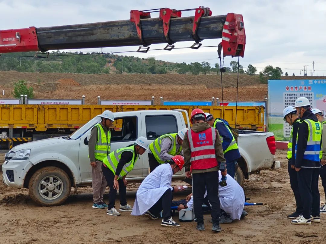 仪式结束后,国道512线G59呼北高速和林东出口至国道209线连接工程项目施工单位围绕活动主题,组织开展起重伤害事故应急演练。演练活动准备充分、组织有序、程序规范,达到了预期效果,有效检验了施工单位各部门在安全生产事故及突发事件中的应急救援实战能力。