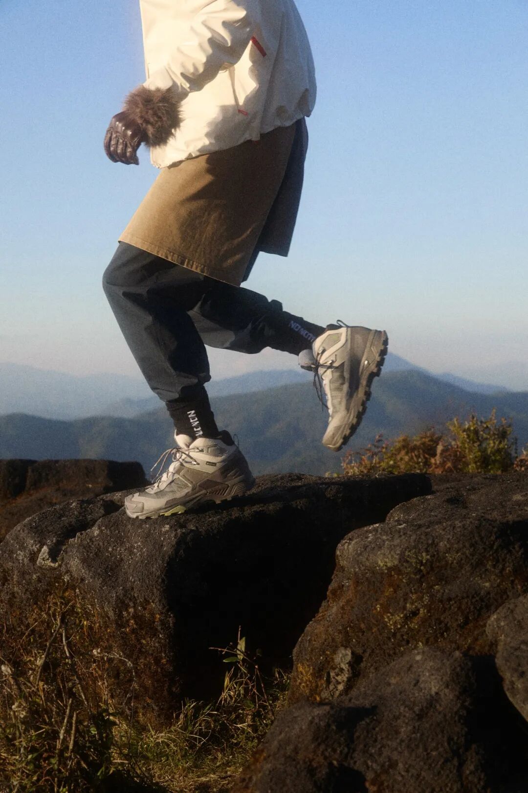 系列服装与配饰同样延续了这份古道叙事感。三合一夹克内衬印着古道地图,裤装和配饰上点缀着标志性的马蹄印章,户外背包灵感来自古老的茶箱……每一处细节,都在不动声色地致敬那份穿越千年的探索精神。