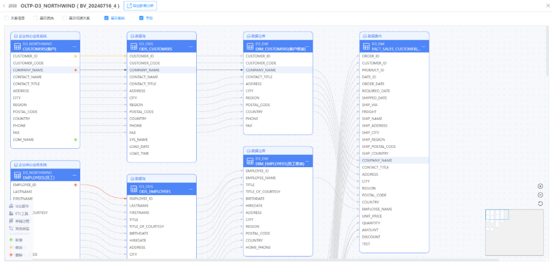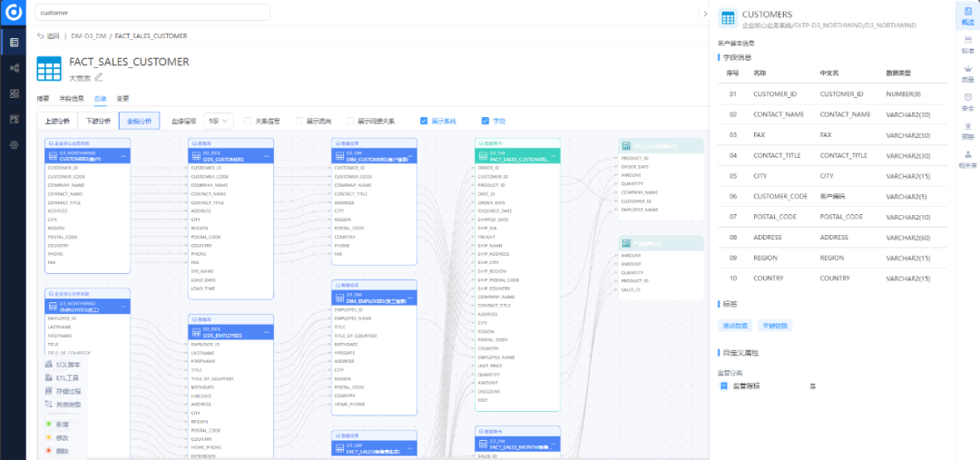 · 自动化生成系统上下游的全域数据血缘链路图,清晰展示数据流动方向。