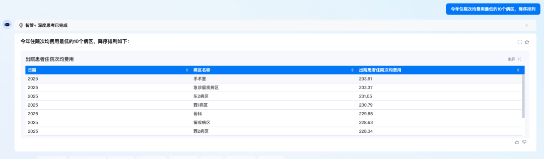 摒弃了繁琐的人力流程,医院领导者直接通过与ChatBI助手对话,随时并实时获取数据与自动分析结果,小陈也不再为医院领导者突如其来的需求而感到焦头烂额。
