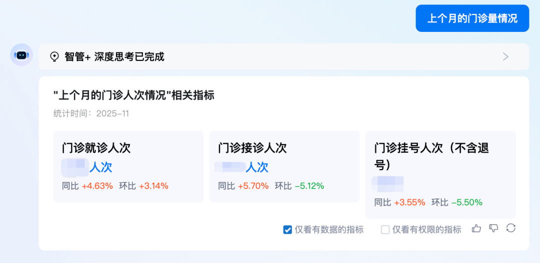 “正在为您分析上个月(10月份)全院的门诊量情况...”