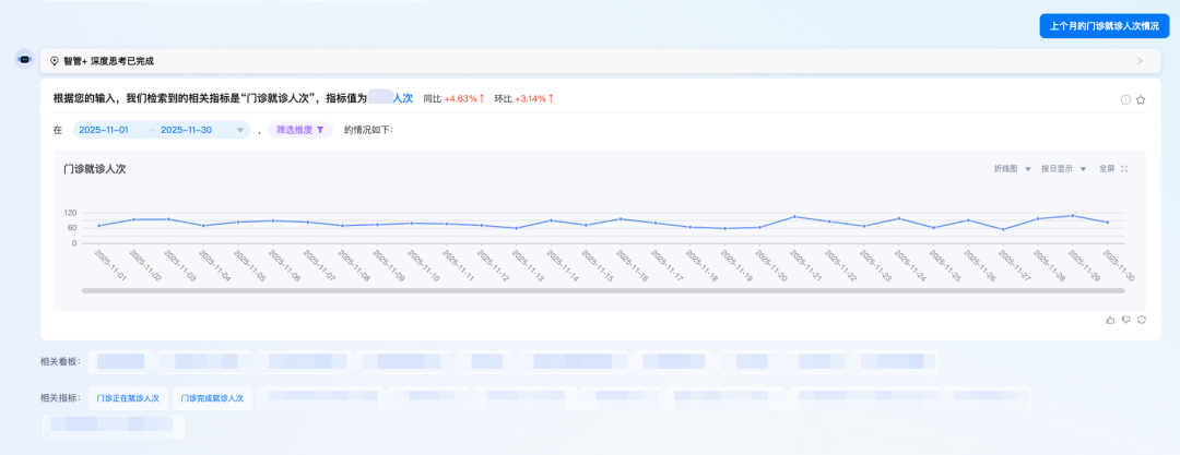 “ChatBI,帮我分析下上个月全院的门诊量情况”