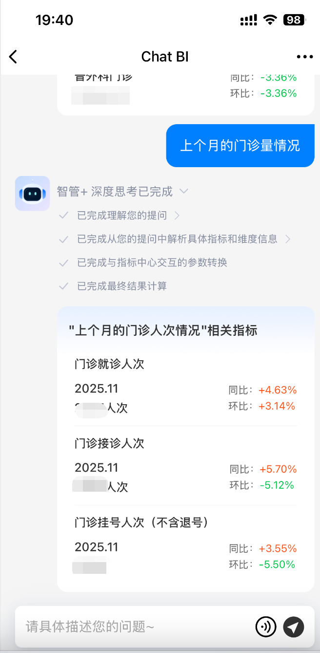 现在:对 ChatBI 说一句“生成上月全院运营月报,下午开会用”,3分钟后,一份简报已推送到微信/钉钉/邮箱。