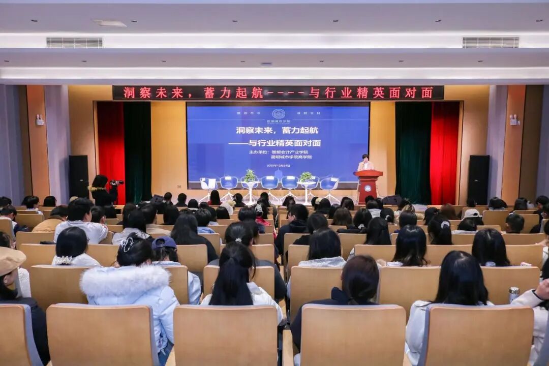 12月24日,在昆明城市学院数字经济产业学院与智能会计产业学院的支持下,以“洞察未来,蓄力起航——与行业精英面对面”为主题的专题沙龙在学校海源校区两个会场同步举行。活动汇聚了来自国企、民营企业及教育科技领域的六位行业翘楚,以及五位在不同领域取得突出成绩的优秀校友,共同为商科毕业生带来前沿洞察、实战经验与职业智慧。
