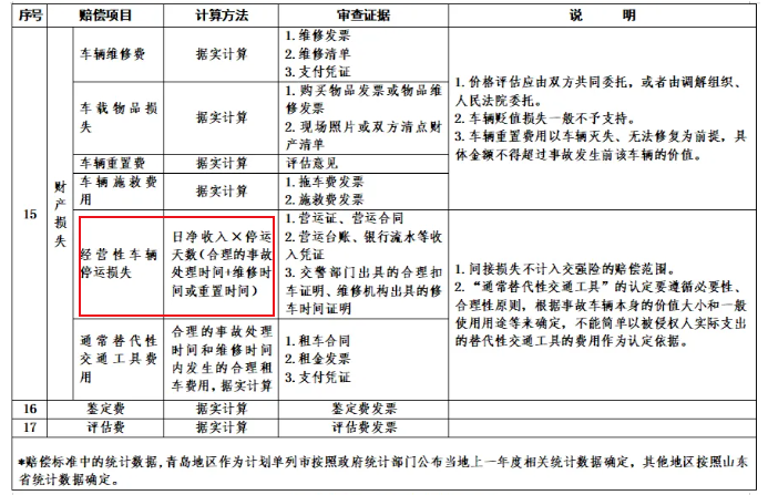 → 经营性车辆的停运损失,按“日净收入×停运天数”计算。