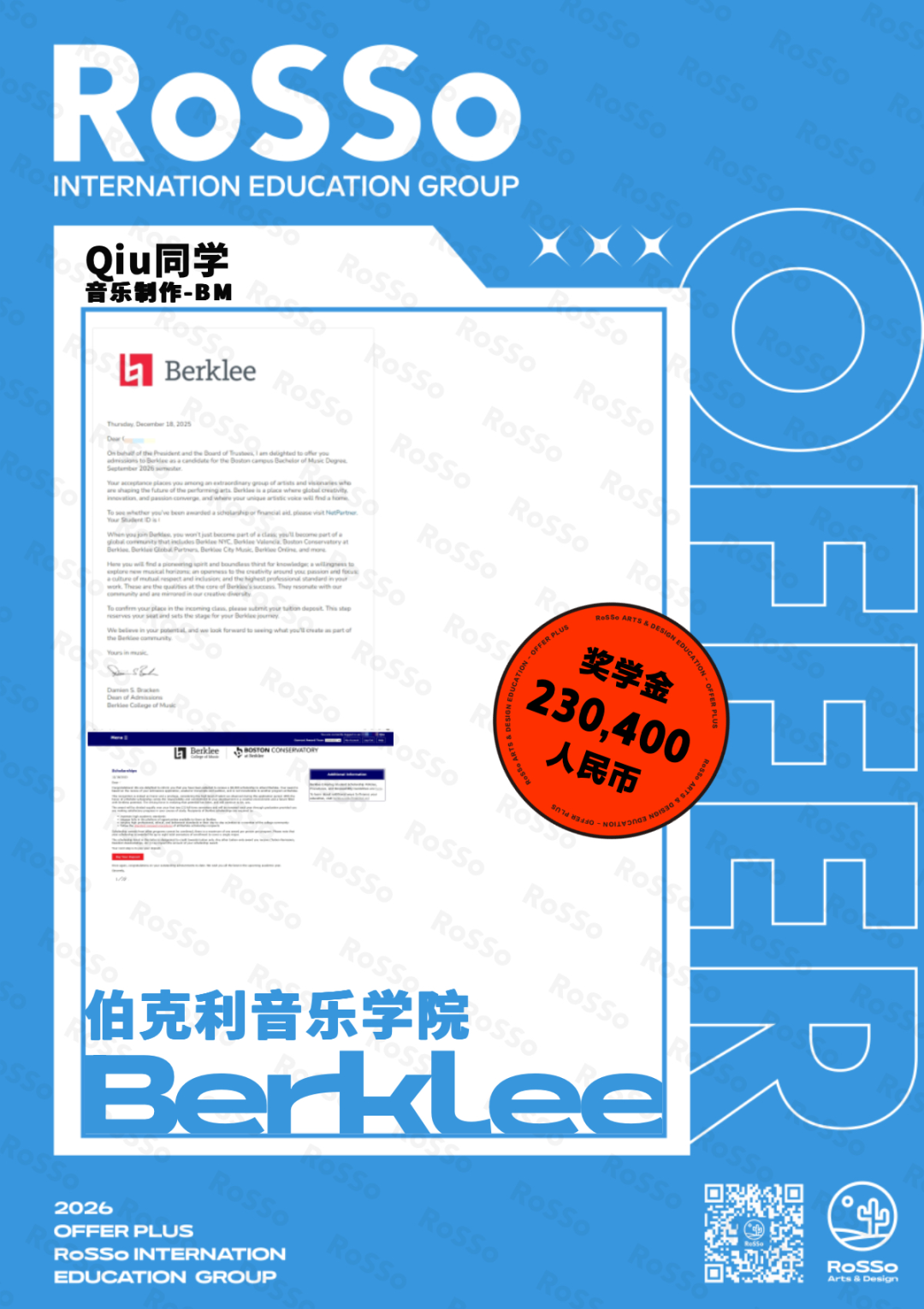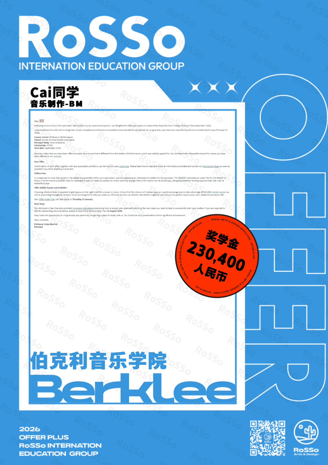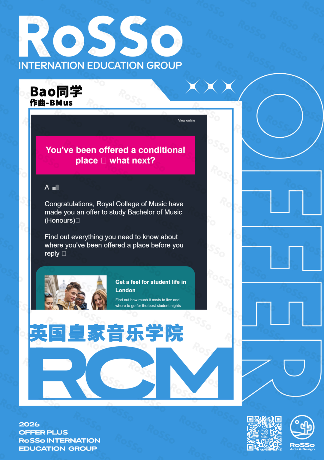 #RoSSo#RoSSo艺术留学#音乐留学#26Fall#Offer录取#英国音乐留学#美国音乐留学#伯克利音乐学院#RCM#亚洲音乐留学