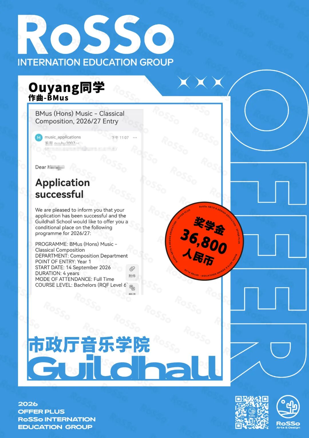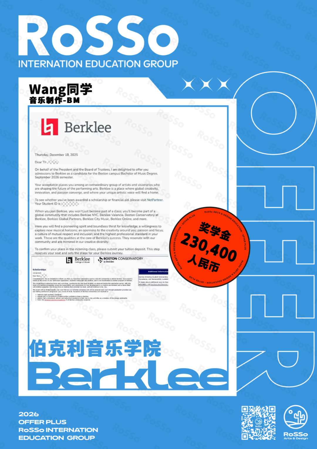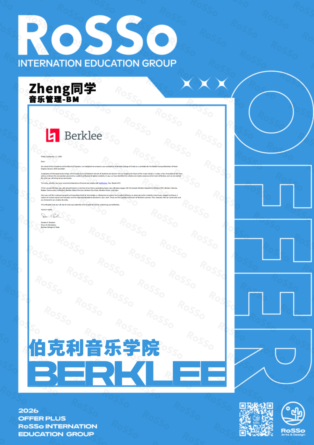 #RoSSo#RoSSo艺术留学#音乐留学#26Fall#Offer录取#英国音乐留学#美国音乐留学#伯克利音乐学院#RCM#亚洲音乐留学
