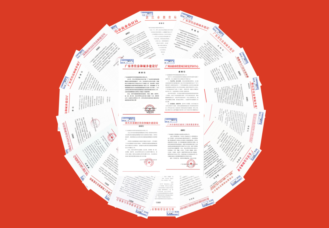 2025年,恰逢“十四五”规划收官与“十五五”规划谋篇布局的关键交汇点,广东省建筑科学研究院集团股份有限公司(以下简称“广东建科”“公司”)深刻领会党中央关于高质量发展的精神要义,在服务粤港澳大湾区建设、推动住房城乡建设事业发展的具体实践中,勇担使命、砥砺前行。今年截至目前,累计收到来自政府单位、行业协会及合作伙伴的感谢信70多封。其中,包括来自广东省住房和城乡建设厅、广东省应急管理厅等省级单位或部门的17封,来自广州、深圳、佛山市住房和城乡建设局等市、区级单位或部门的42封,以及来自广州地铁集团有限公司等企业及行业协会的12封。这一封封沉甸甸的信函,是认可、是信任,更是广东建科以实际行动贯彻落实党中央决策部署、践行国企使命、以专业力量服务社会的真实见证。