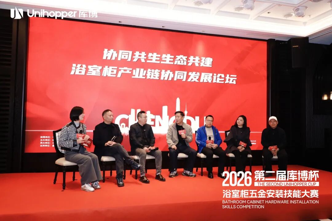 在“协同共生 生态共建——浴室柜产业链协同发展”论坛中,Unihopper库博集团产品中心兼营销中心总经理邢望先生与多位行业嘉宾围绕浴室柜产业的协同创新、品质提升与标准化建设等关键议题展开深度对话。