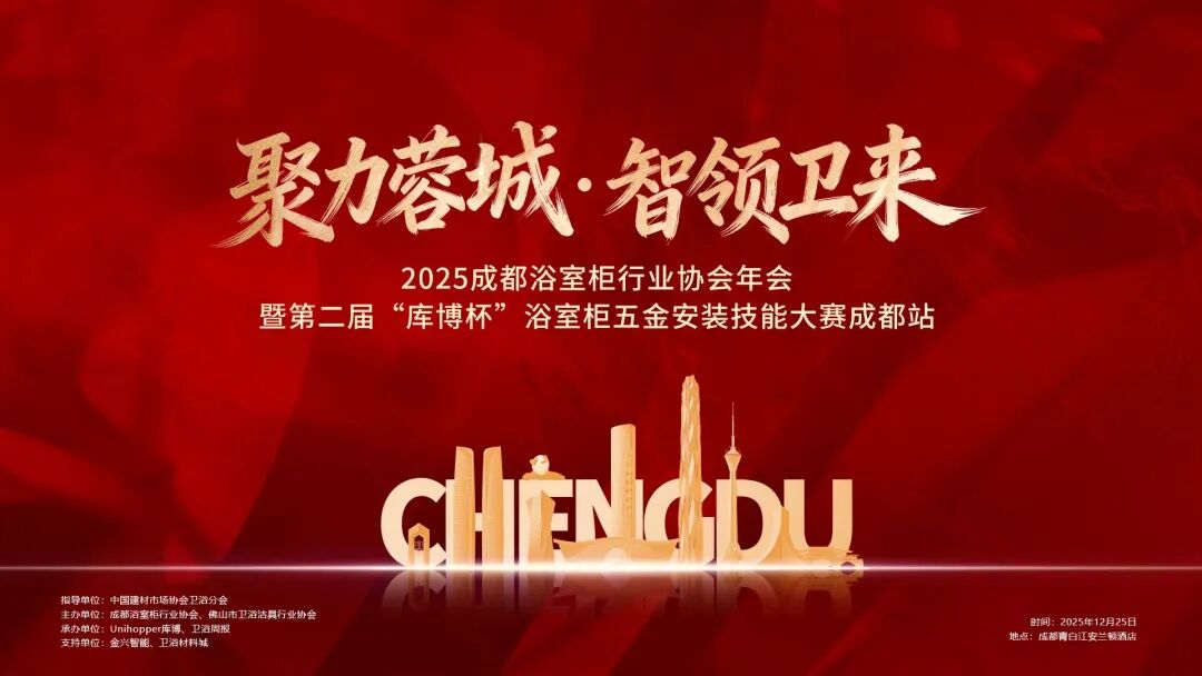 2025年12月25日,“聚力蓉城·智领卫来”2025成都浴室柜行业协会年会暨第二届“库博杯”浴室柜五金安装技能大赛成都站启动会在成都蓉城隆重举行。一场行业盛会,于产业腹地启幕,一次聚焦长期价值的赛事行动,正从行业深处启程。