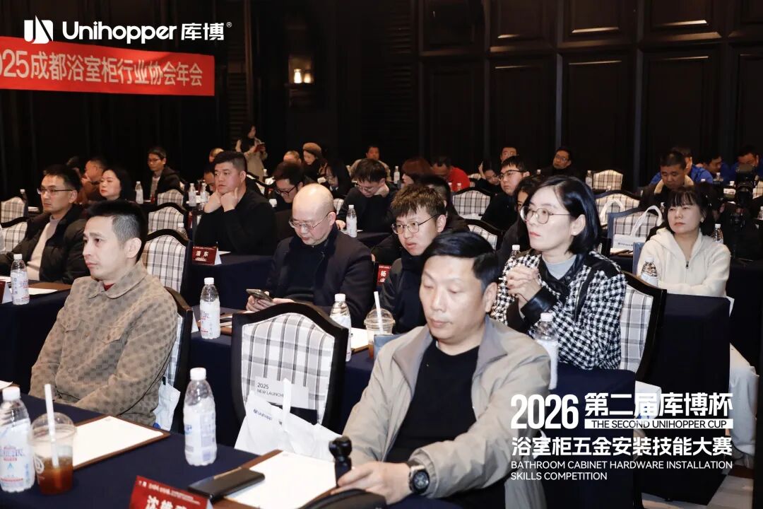成都作为中国浴室柜产业的核心产区之一,汇聚了数百家优秀企业,形成了深厚的产业积淀与集群优势。本次年会与“库博杯”大赛成都站启动会的深度融合,彰显了产区对标准化、专业化安装工艺的高度重视,也体现了库博持续赋能产业链、推动行业协同发展的坚定决心。