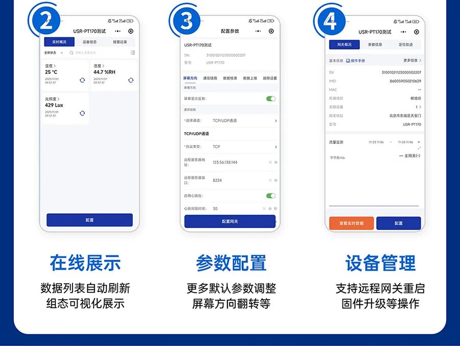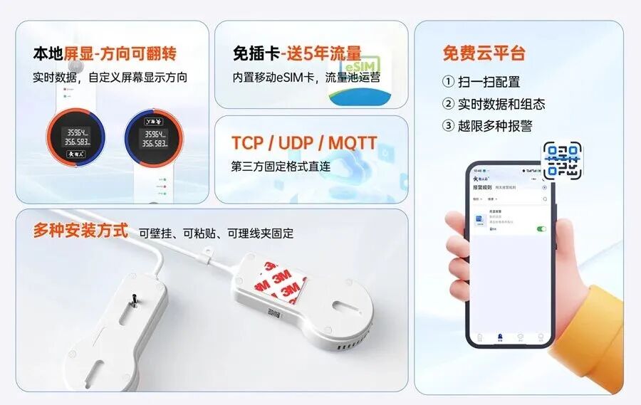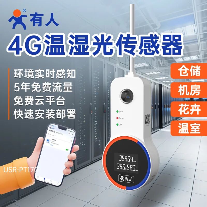 免插卡,内置移动eSIM,出厂自带 5 年免费 4G 流量!通电即联网。实时监测大棚、果园、育苗房等环境,异常情况及时预警,避免冻害、干旱或光照不足影响作物生长,为高产提供保障;药品、食品、电子元件仓储环境监测,小巧机身,平放 / 壁挂灵活安装,高清屏本地直读 + 微信远程查数据,组态报表助力库存环境管理,24 小时报警守护货物安全,降低损耗;科研实验室、数据机房,精准监测环境参数,免配置操作不干扰运行,免费组态满足专业数据追溯需求,异常报警避免重大损失;免配置、全天候报警、三合一监测、高清翻转屏、专业组态、5年免费流量——PT170 以实用功能直面监测痛点,是各类温湿度光照监测场景的理想之选。如有需要,欢迎咨询下单。