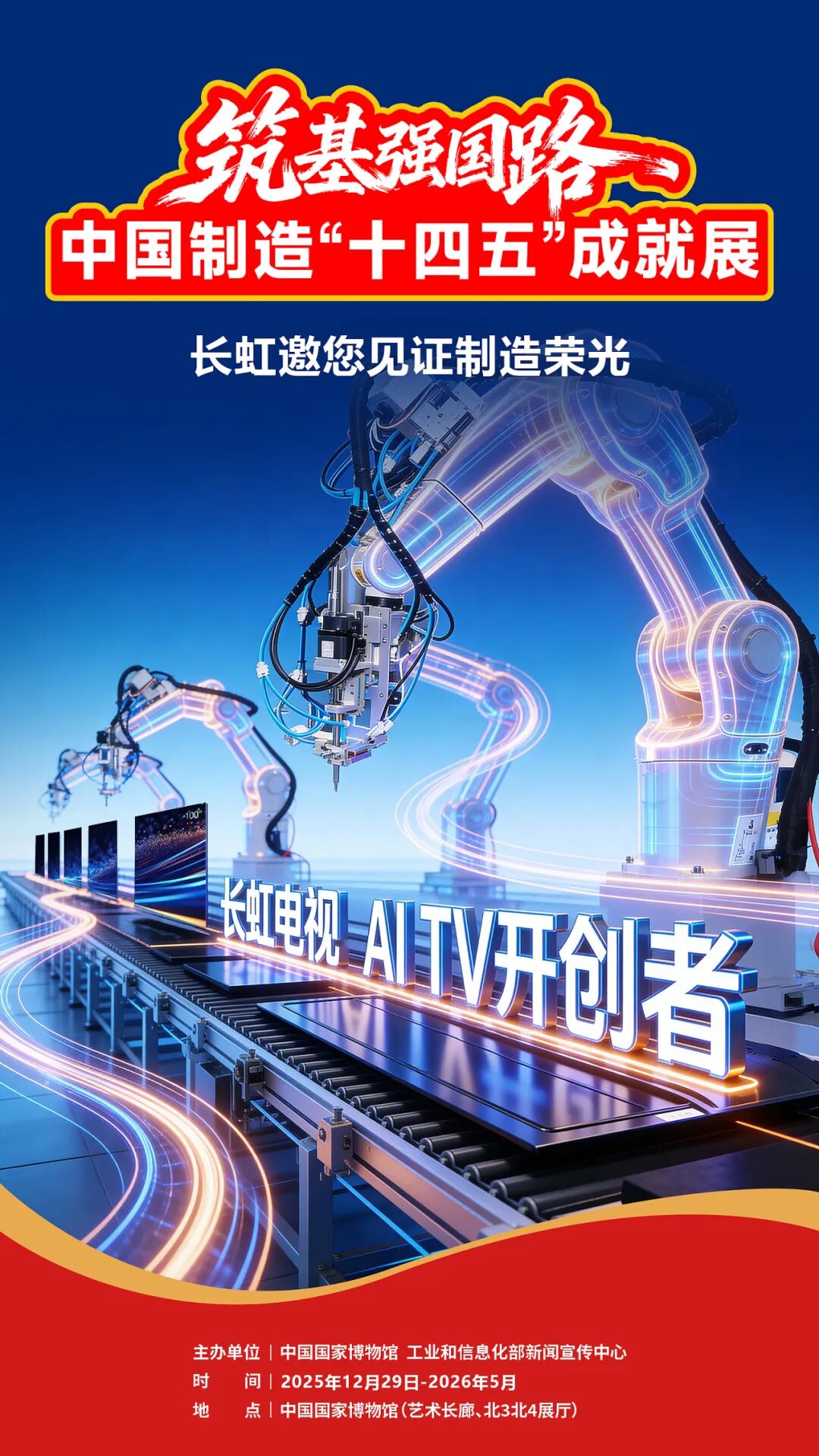 据了解,中国制造‘十四五’成就展将持续至2026年5月。展览期间,“长虹造”展品将与其他展品一同在中国国家博物馆等待公众朋友们的到来,一起解开中国制造“十四五”的发展密码,沉浸式感受大国制造的硬核实力与民生温情!