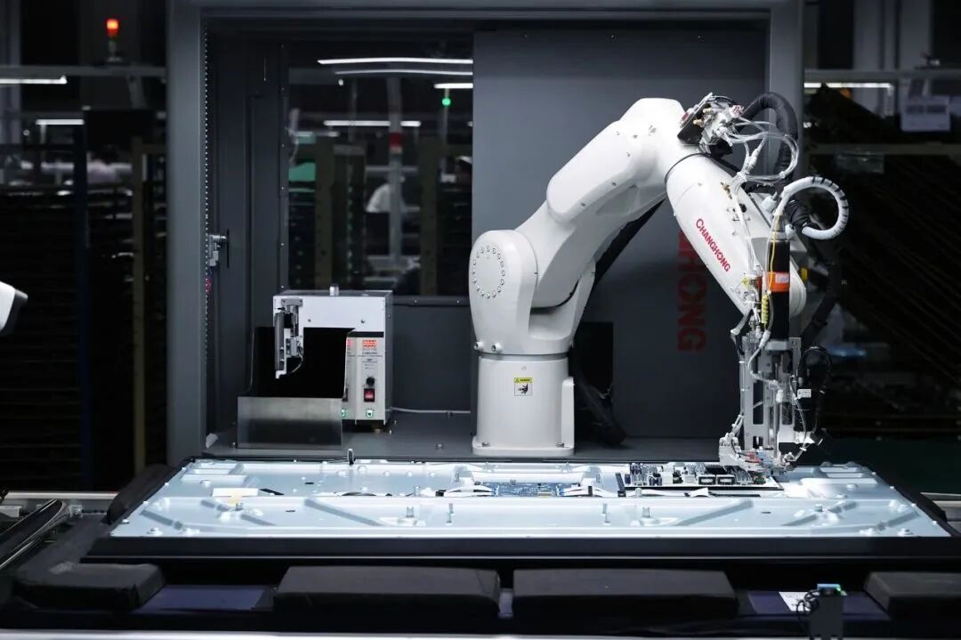 如今,这份创新基因持续迭代:长虹自主研发的智能螺钉机器人已经在3C产线上360°无死角地完成着零部件螺钉紧固工作,生产效率大幅提升。利用自带的视觉识别系统,集成AI深度自学习技术,可自主识别孔位、调节力度,换产不同规格产品仅需2分钟。