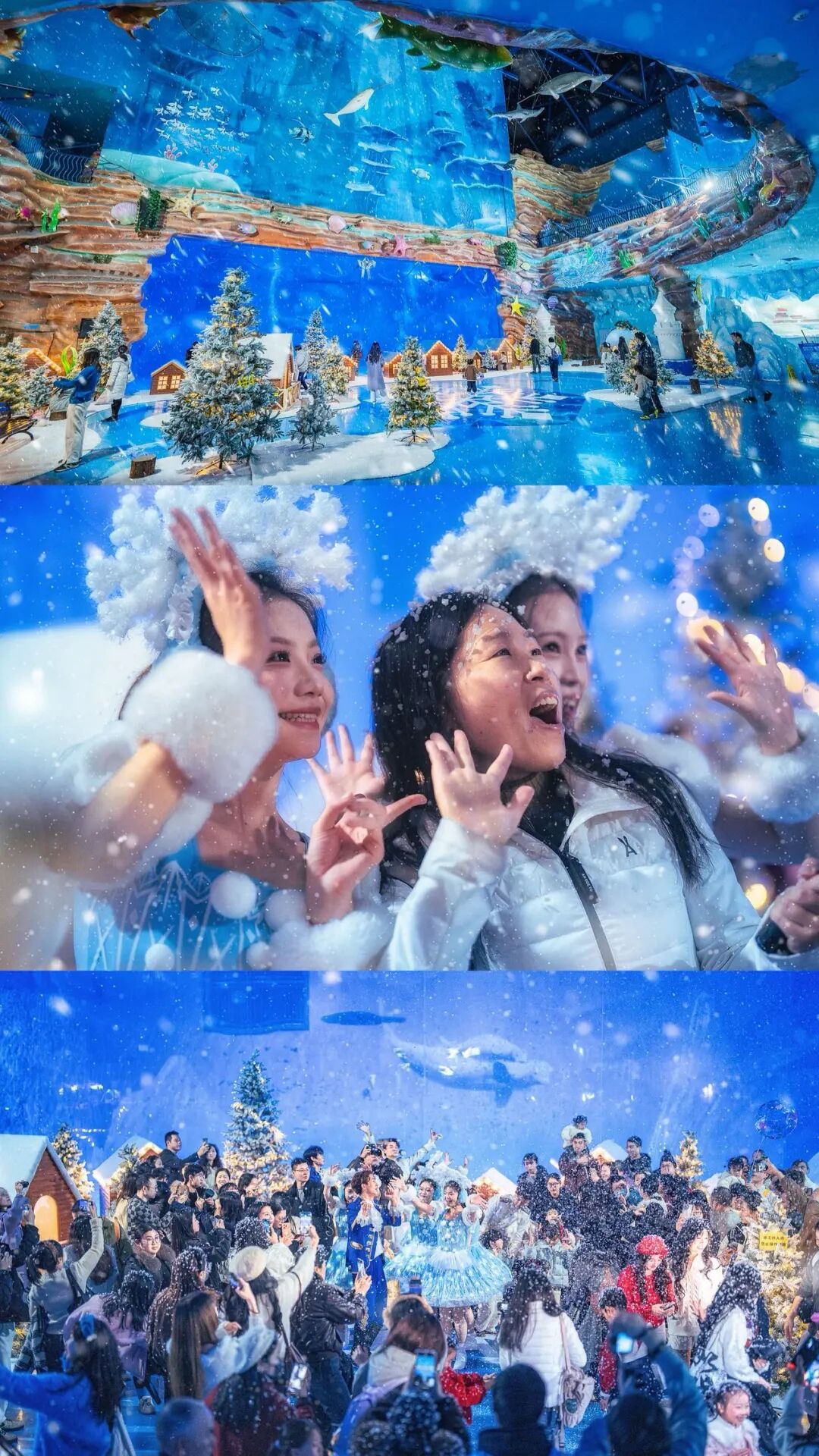 在昆明融创海世界,接受海狮、海豚等海洋动物的可爱暴击;闯入重庆融创海世界,看雪花在海底飘落,鱼群穿梭其间,现实与童话的边界在此刻模糊。