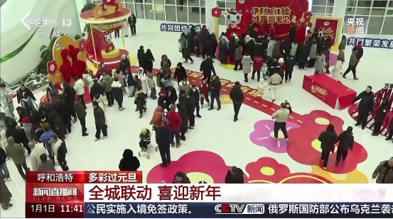 活动期间,健康谷围绕“健康+科技”打造全龄段赛博狂欢:现场非遗展演、冰雕投影3D激光马、流量乐队演唱、朋克机器人巡演等亮点纷呈;年货市集免费派发奶茶、春联,汇集非遗技艺与特色奶食,尽显草原乳文化与新年民俗魅力,成为跨年“顶流”打卡地;室内“伊路生花”主题游园会,创新“花币”玩法,以“探索-收集-兑换”的互动主线,成功将品牌内涵、文化体验与消费互动相结合,打造出汇聚人流、激活消费的节日文旅新亮点,成为近6.5万市民跨年新选择。本次活动的成功举办,将伊利健康谷跨年夜活动IP进一步与本地生活深度绑定,于央视新闻频道向全国人民生动展现了青城跨年的独特魅力与蓬勃活力。
