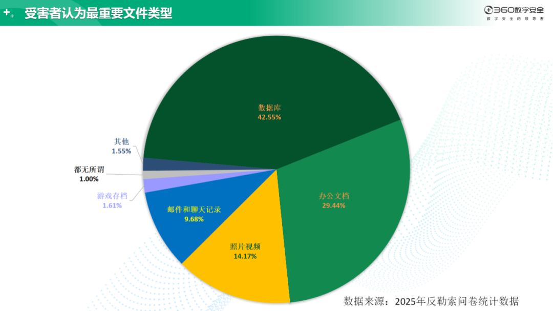 较去年相比,数据库与办公文档仍是受害方最主要的两类被加密数据,但二者的排序发生对调:数据库现居首位,且领先优势显著。这一变化与政企机构遭受攻击比例上升密切相关,因大量业务数据更多存储于数据库中,相关专业软件也普遍依赖数据库进行数据调用与管理。